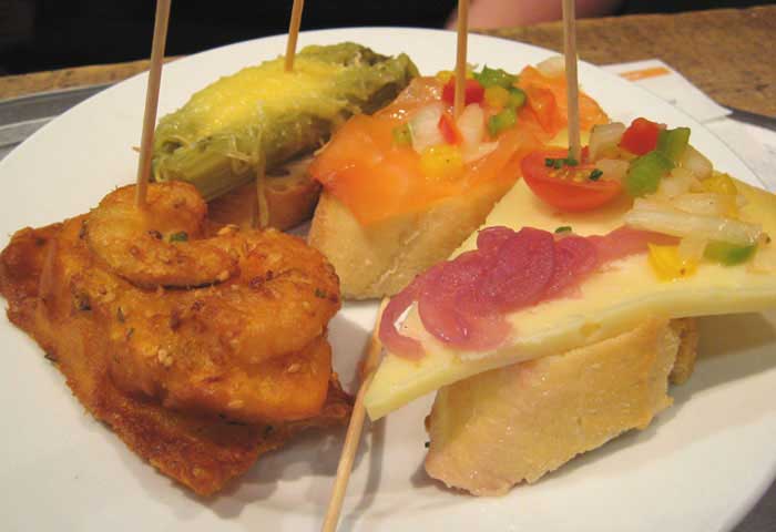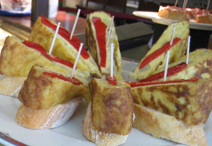 patatas bravas, pan de tomate, pinchos, tortilla (careful, it’s not what you think), jamon serrano,