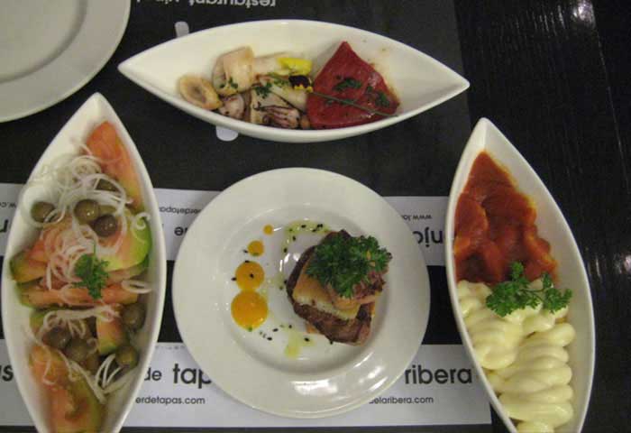 Things you recognize, like tapas, olives, paella, gazpacho. Things you might not, such as
